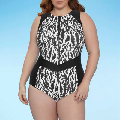 Xersion Womens Animal One Piece Swimsuit Plus Color Black White Jcpenney