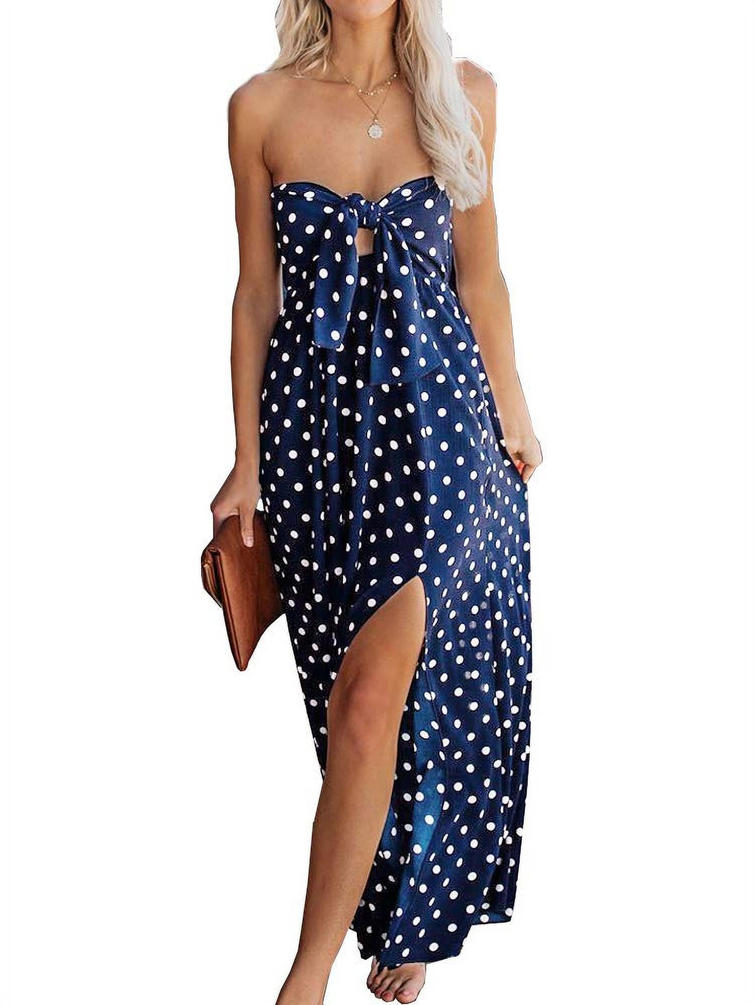 Womens Polka Dot Strapless Maxi Dress Tie Knot Bandeau Split Summer Beach Party Long Tube Dresses Walmart Com